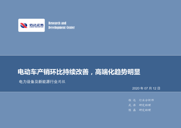 【信达证券】【20200712】电力设备及新能源行业周报:电动车产销环比持续改善,高端化趋势明显-9页