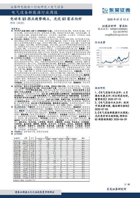 【东吴证券】【20200712】电气设备新能源行业周报:电动车Q3拐点趋势确立,光伏Q3需求向好-41页