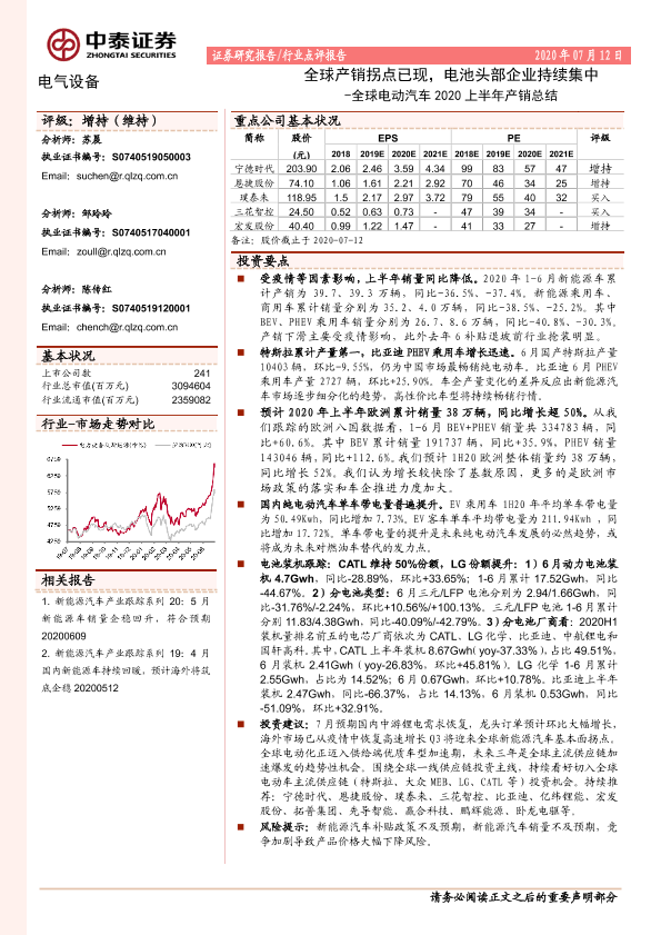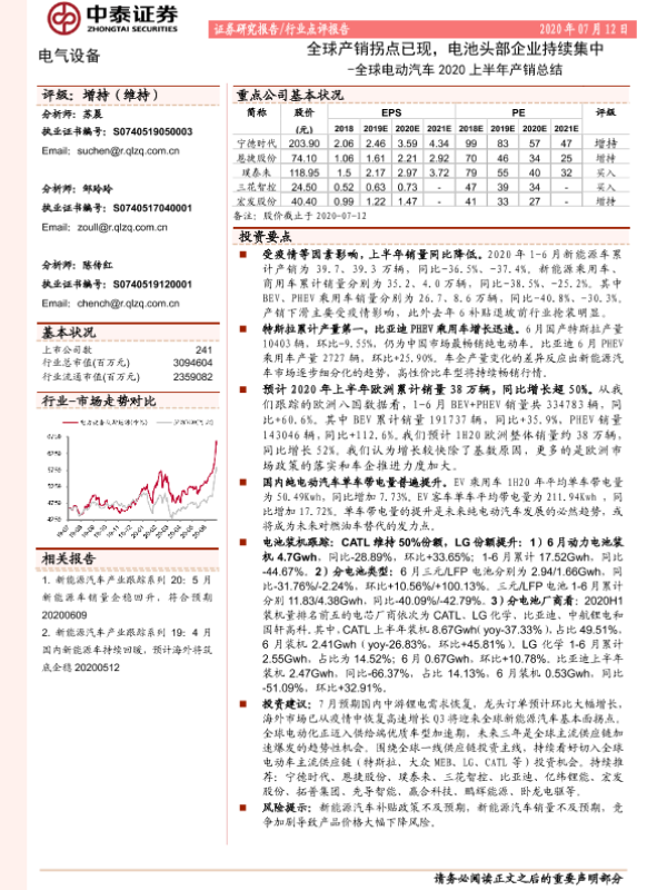 【中泰证券】【20200712】全球电动汽车2020上半年产销总结:全球产销拐点已现,电池头部企业持续集中-21页