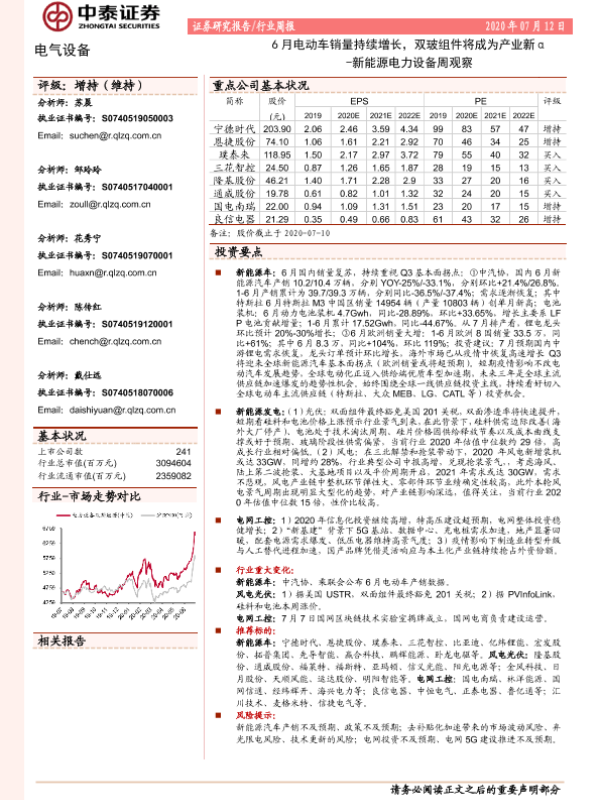 【中泰证券】【20200712】6月电动车销量持续增长,双玻组件将成为产业新α - 新能源电力设备周观察-21页