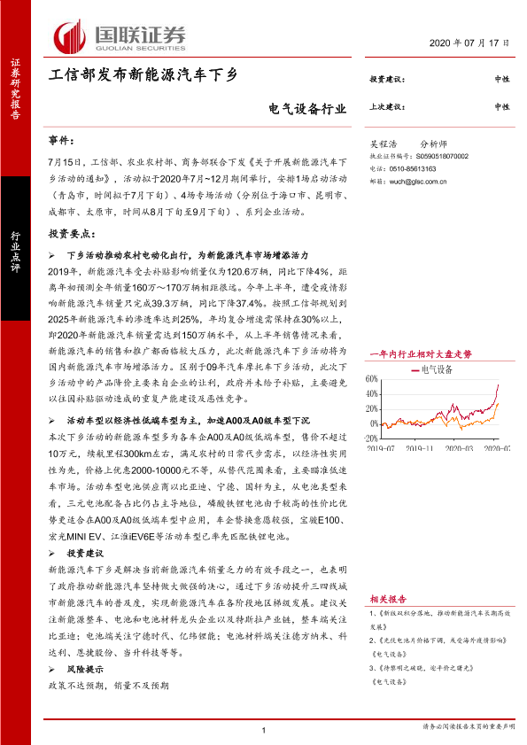 【国联证券】【20200717】电气设备行业:工信部发布新能源汽车下乡-3页