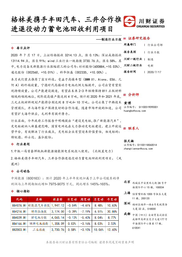【川财证券】【20200717】制造行业日报:格林美携手丰田汽车、三井合作推进退役动力蓄电池回收利用项目-3页