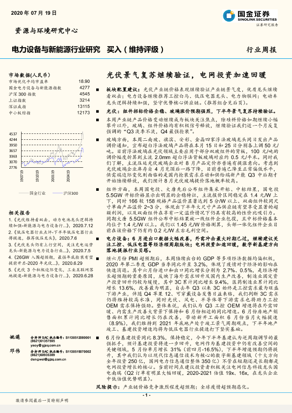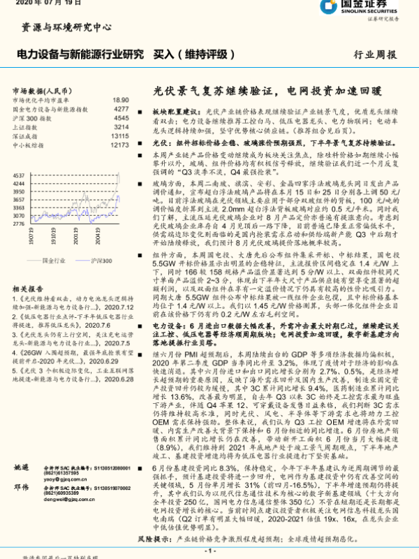 【国金证券】【20200719】电力设备与新能源行业研究周报:光伏景气复苏继续验证,电网投资加速回暖-5页
