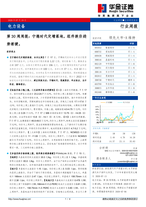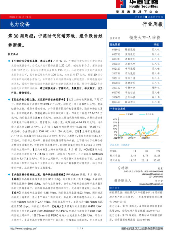 【华金证券】【20200719】电力设备第30周周报:宁德时代定增落地,组件跌价趋势渐缓-4页