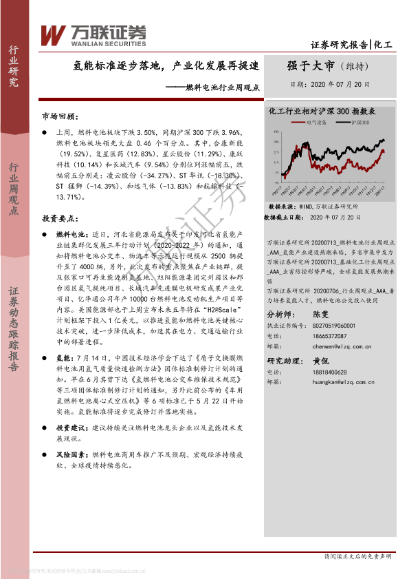 【万联证券】【20200720】燃料电池行业周观点:氢能标准逐步落地,产业化发展再提速-6页