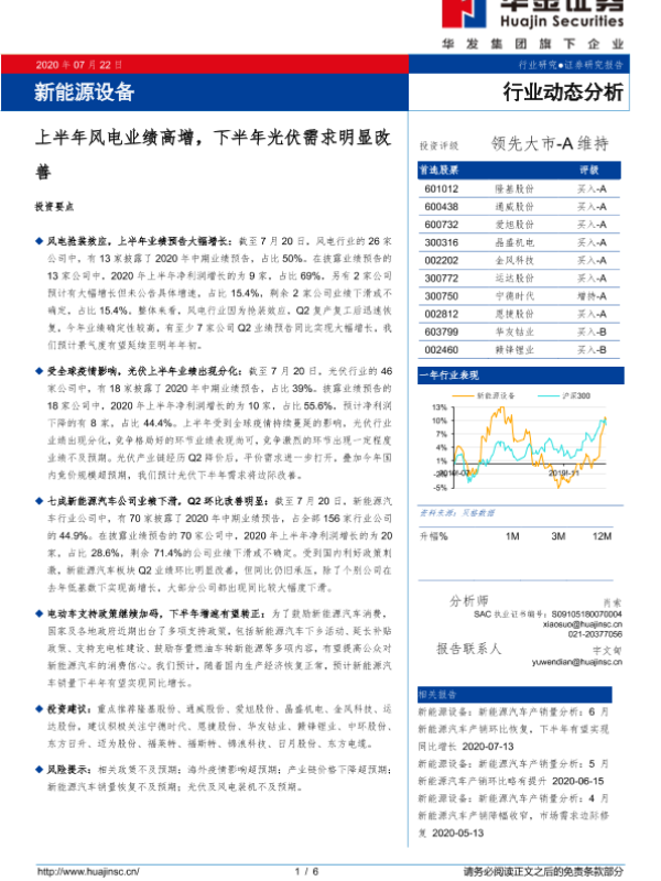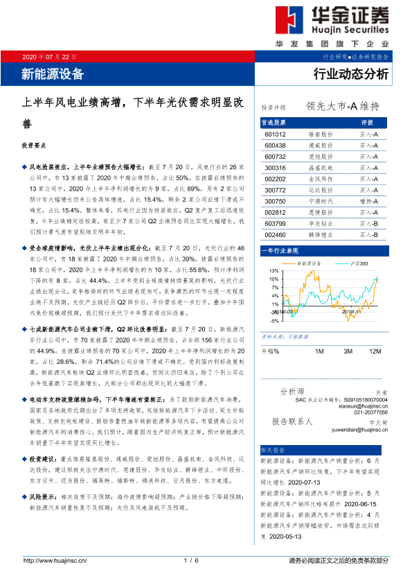 【华金证券】【20200722】20200722-华金证券-新能源设备行业动态分析:上半年风电业绩高增,下半年光伏需求明显改善-6页