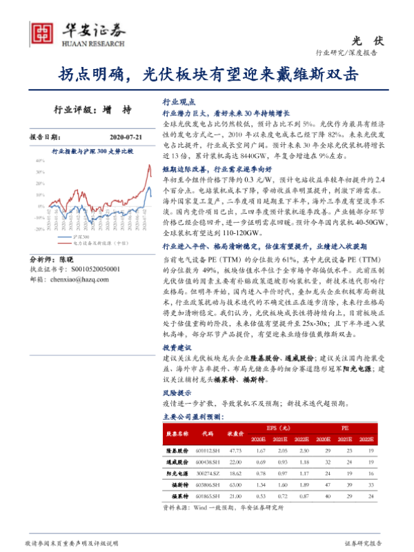 【华安证券】【20200721】光伏深度报告:拐点明确,光伏板块有望迎来戴维斯双击-22页