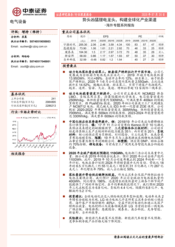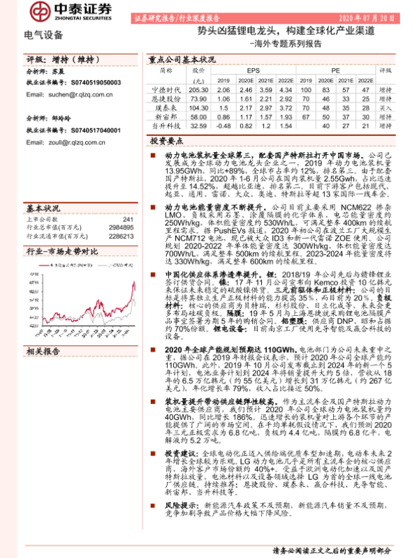 【中泰证券】【20200720】海外专题系列报告:势头凶猛锂电龙头,构建全球化产业渠道-27页