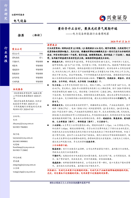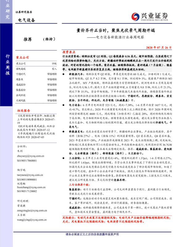 【兴业证券】【20200726】量价齐升正当时,聚焦光伏景气周期开端——电力设备新能源行业每周观察-34页