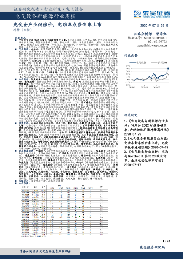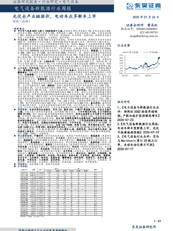 【东吴证券】【20200726】电气设备新能源行业周报:光伏全产业链涨价,电动车众多新车上市-43页