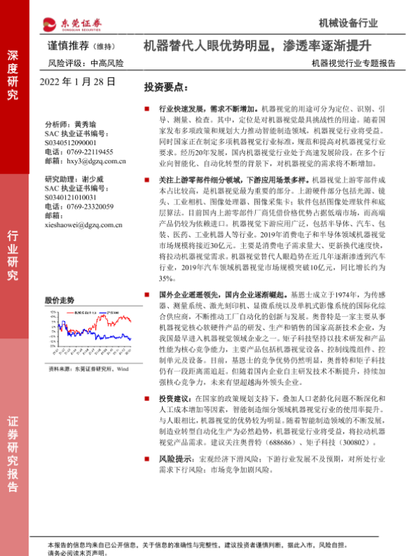 【东莞证券】【20220128】机器视觉行业专题报告:机器替代人眼优势明显,渗透率逐渐提升-27页