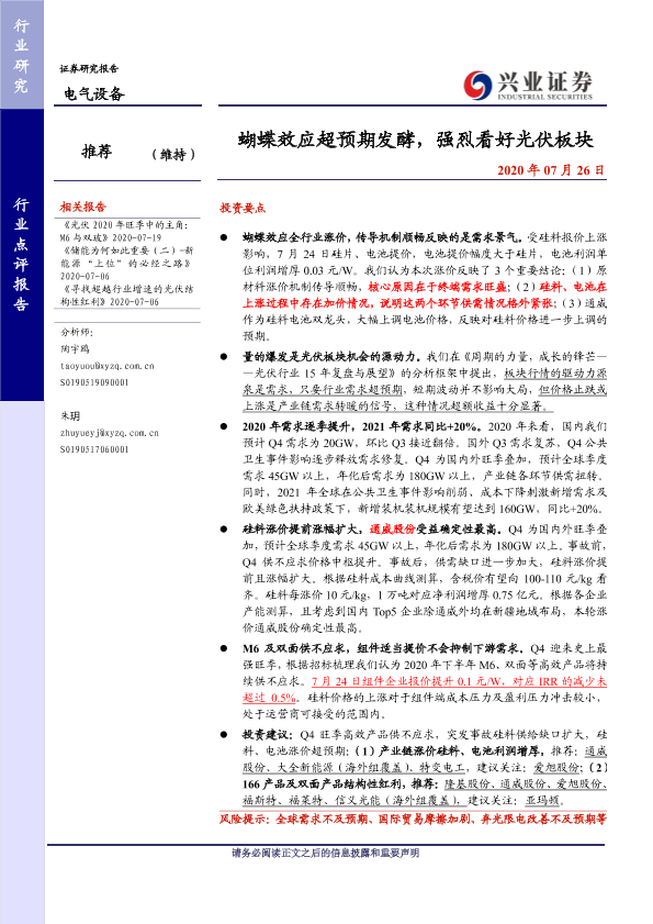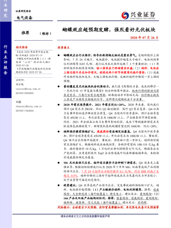 【兴业证券】【20200726】20200726-兴业证券-电气设备行业点评报告:蝴蝶效应超预期发酵,强烈看好光伏板块-11页