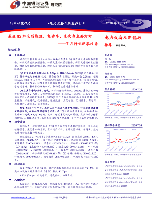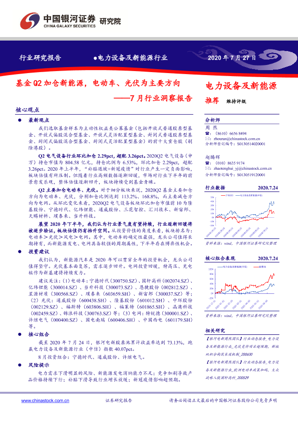 【银河证券】【20200727】电力设备及新能源行业:7月行业洞察报告:基金Q2加仓新能源,电动车、光伏为主要方向-40页