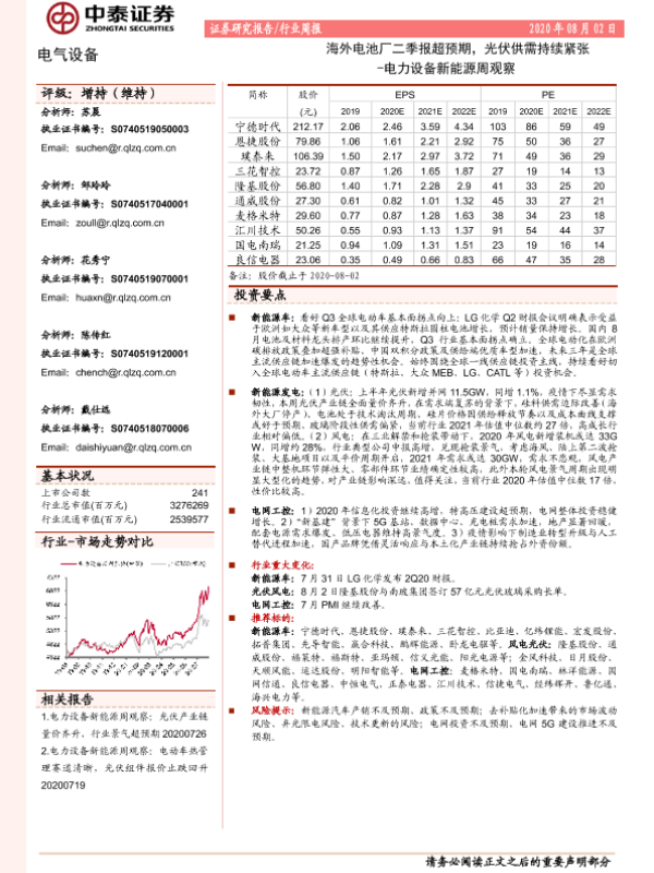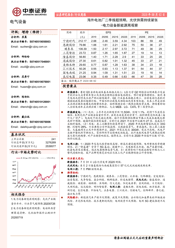 【中泰证券】【20200802】电力设备新能源周观察:海外电池厂二季报超预期,光伏供需持续紧张-19页