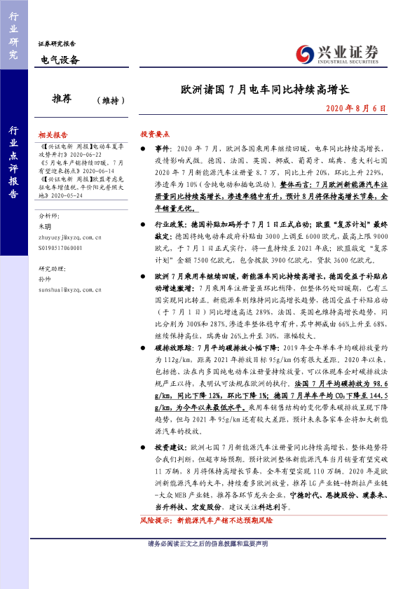 【兴业证券】【20200806】欧洲诸国7月电车同比持续高增长-10页