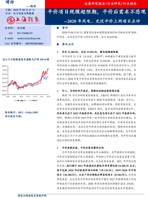 【上海证券】【20200807】2020年风电、光伏平价上网项目点评:平价项目规模超预期,平价后需求不悲观-3页
