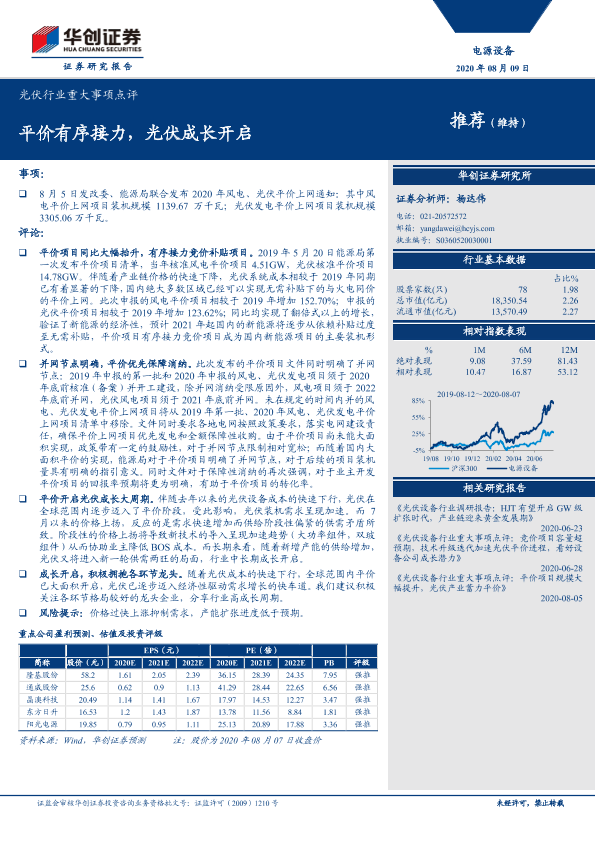 【华创证券】【20200809】光伏行业重大事项点评:平价有序接力,光伏成长开启-3页
