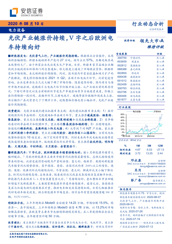 【安信证券】【20200810】电力设备:光伏产业链涨价持续,V字之后欧洲电车持续向好-21页