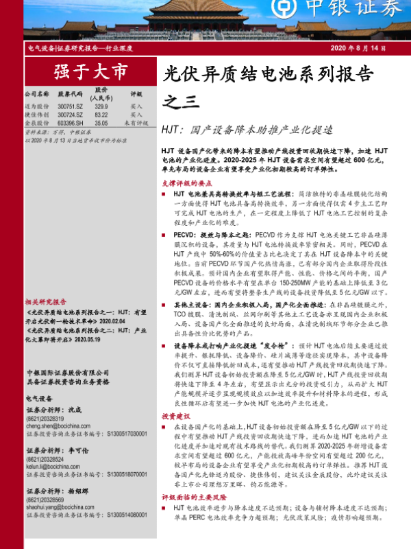 【中银证券】【20200814】光伏异质结电池系列报告之三:HJT:国产设备降本助推产业化提速-28页