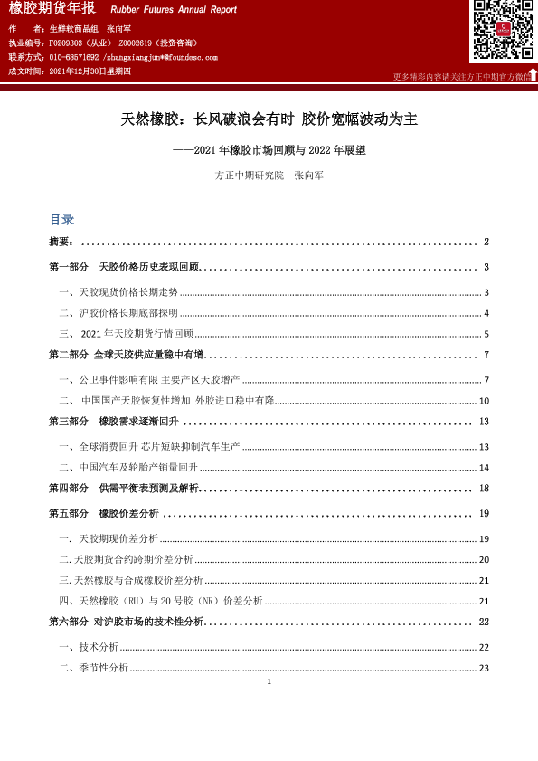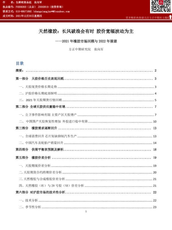 【方正中期期货】【20211230】橡胶期货年报:长风破浪会有时,胶价宽幅波动为主-28页