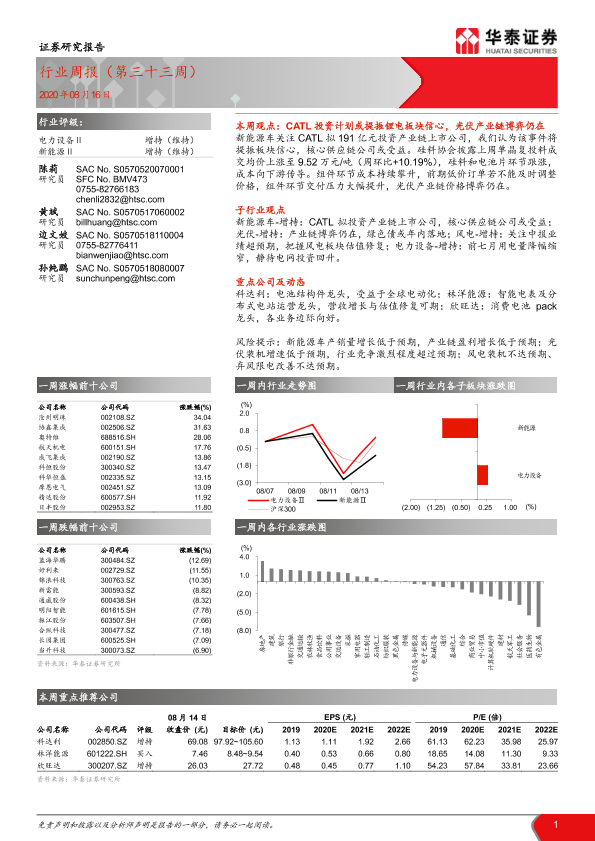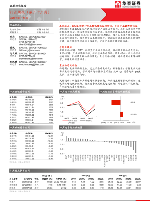 【华泰证券】【20200816】电力设备Ⅱ行业周报(第三十三周)-17页