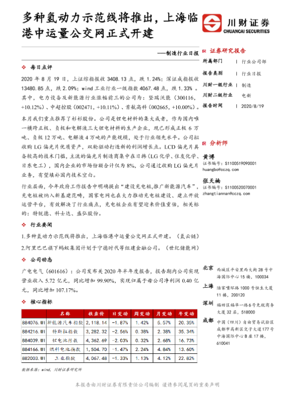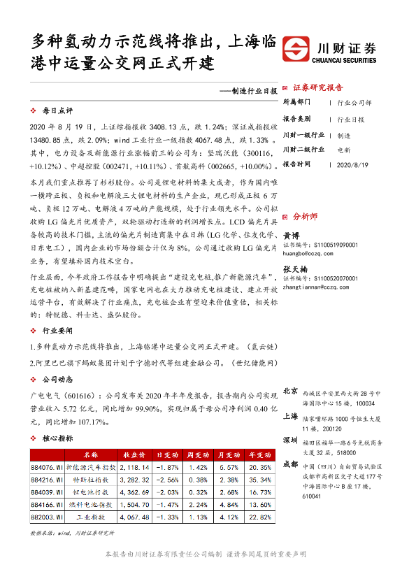 【川财证券】【20200819】制造行业日报:多种氢动力示范线将推出,上海临港中运量公交网正式开建-3页