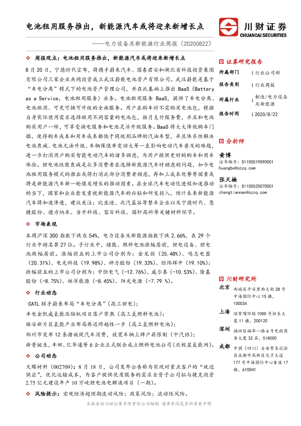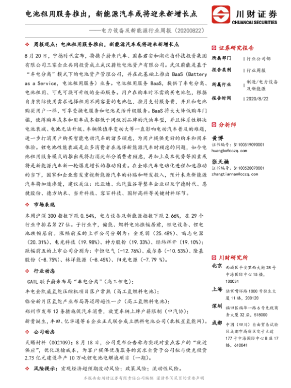 【川财证券】【20200822】电力设备及新能源行业周报:电池租用服务推出,新能源汽车或将迎来新增长点-16页