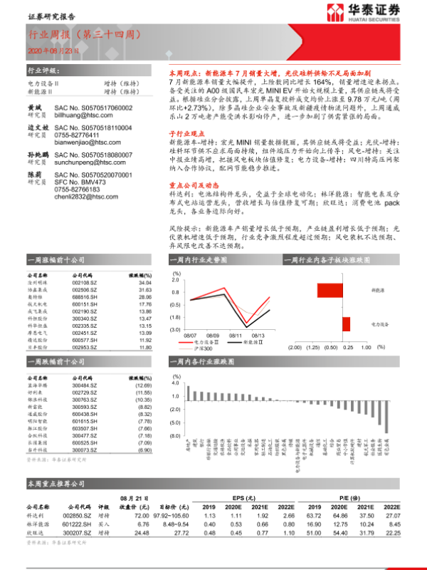 【华泰证券】【20200823】电力设备与新能源行业周报(第三十四周)-15页