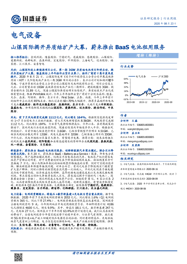【国盛证券】【20200823】电气设备行业周报:山煤国际揭开异质结扩产大幕,蔚来推出BaaS电池租用服务-14页