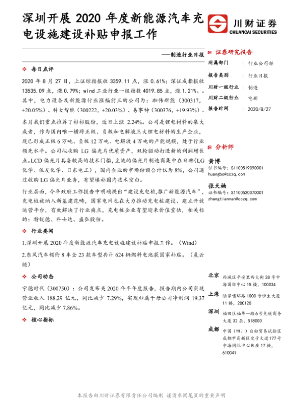 【川财证券】【20200827】制造行业日报:深圳开展2020年度新能源汽车充电设施建设补贴申报工作-3页