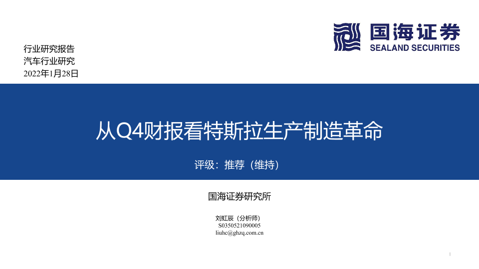 【国海证券】【20220128】汽车行业研究:从Q4财报看特斯拉生产制造革命-30页