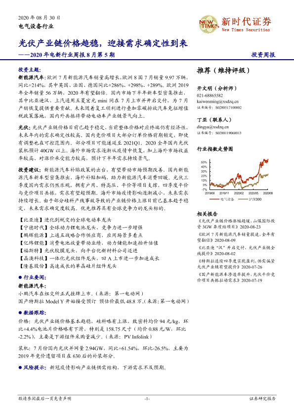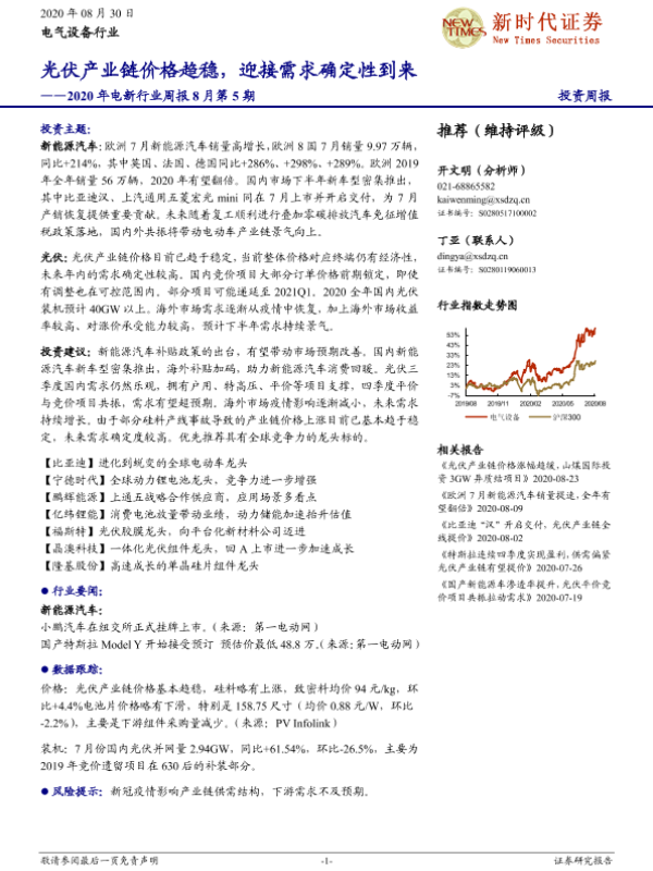 【新时代证券】【20200830】2020年电新行业周报8月第5期:光伏产业链价格趋稳,迎接需求确定性到来-13页