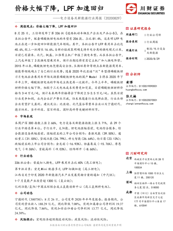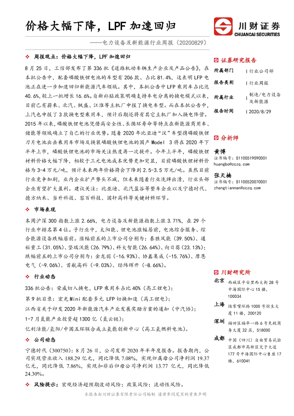 【川财证券】【20200829】电力设备及新能源行业周报:价格大幅下降,LPF加速回归-16页