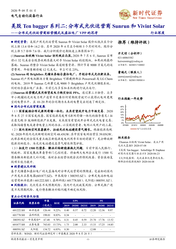 【新时代证券】【202009】美股 Ten bagger系列二:分布式光伏运营商 Sunrun和 Vivint Solar——分布式光伏运营商经营模式及虚拟电厂 VPP的思考-20页