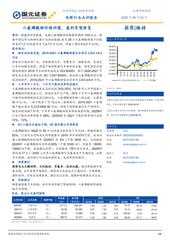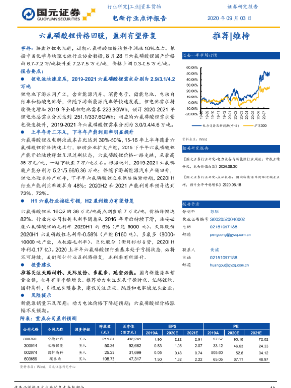 【国元证券】【20200903】电新行业点评报告:六氟磷酸锂价格回暖,盈利有望修复-4页