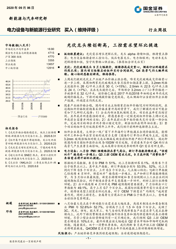 【国金证券】【20200906】电力设备与新能源行业周报:光伏龙头续创新高,工控需求望环比提速-4页