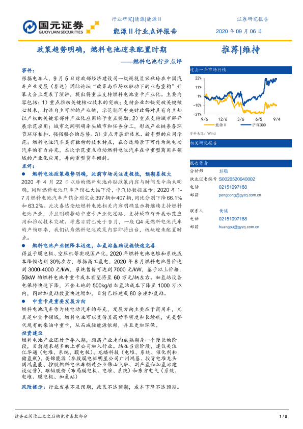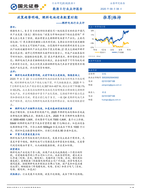【国元证券】【20200906】政策趋势明确,燃料电池迎来配置时期——燃料电池行业点评-5页