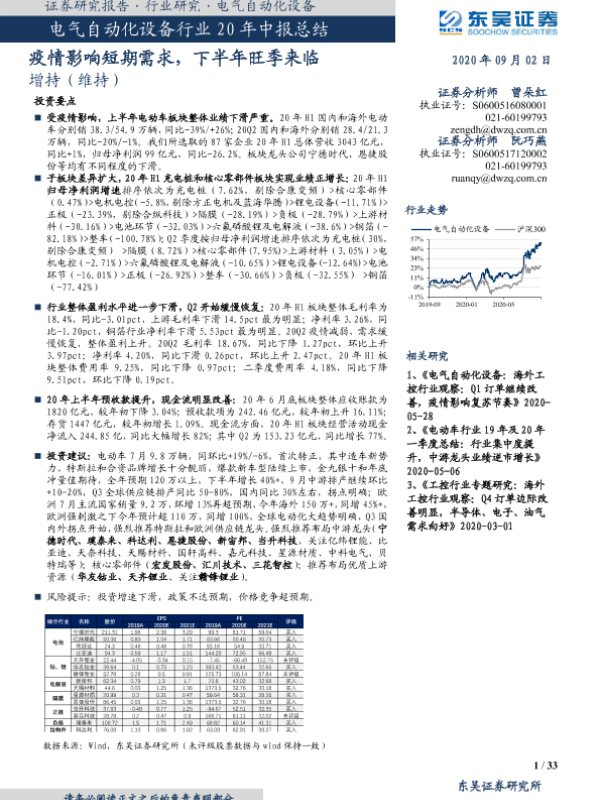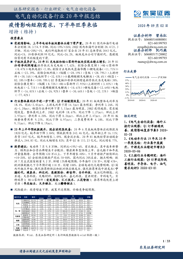 【东吴证券】【20200902】电气自动化设备行业20年中报总结:疫情影响短期需求,下半年旺季来临-33页
