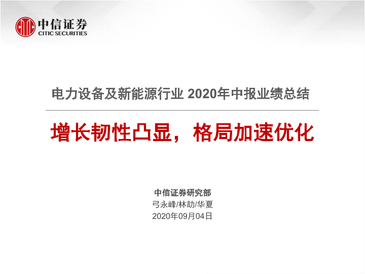 【中信证券】【20200904】电力设备及新能源行业2020年中报业绩总结:增长韧性凸显,格局加速优化-102页