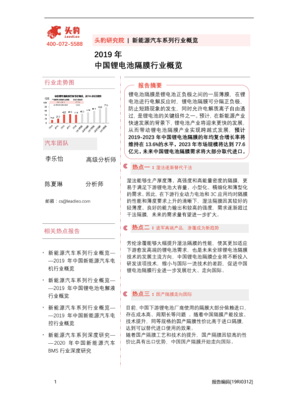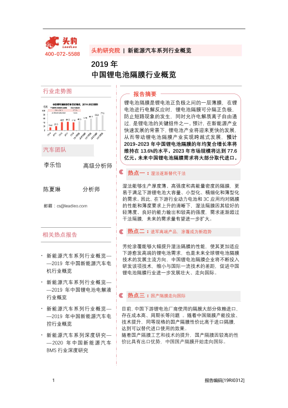 【头豹研究院】【2019】2019年中国锂电池隔膜行业概览-42页
