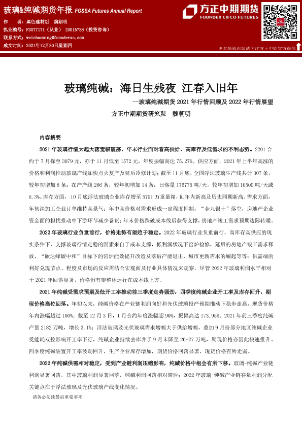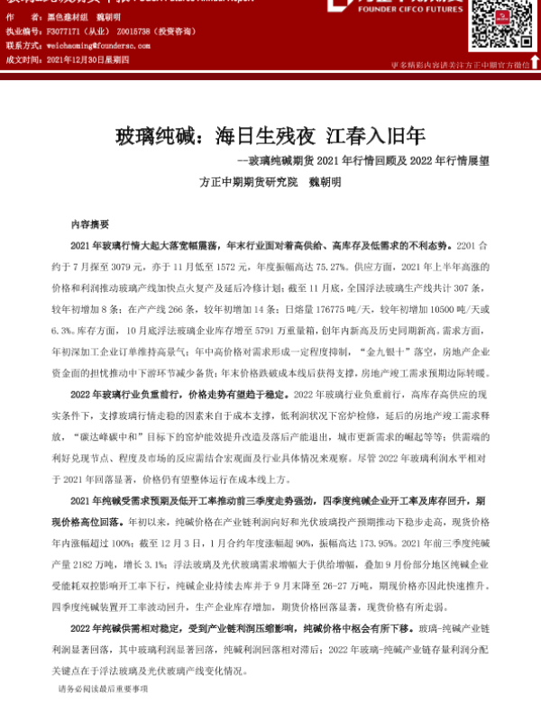 【方正中期期货】【20211230】玻璃纯碱期货2021年行情回顾及2022年行情展望:海日生残夜,江春入旧年-33页