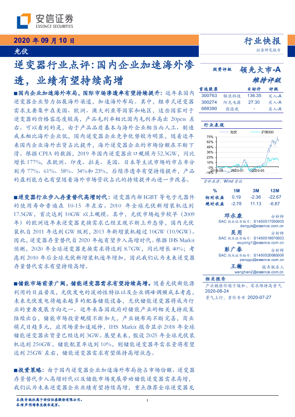 【安信证券】【20200910】光伏行业快报:逆变器行业点评:国内企业加速海外渗透,业绩有望持续高增-4页