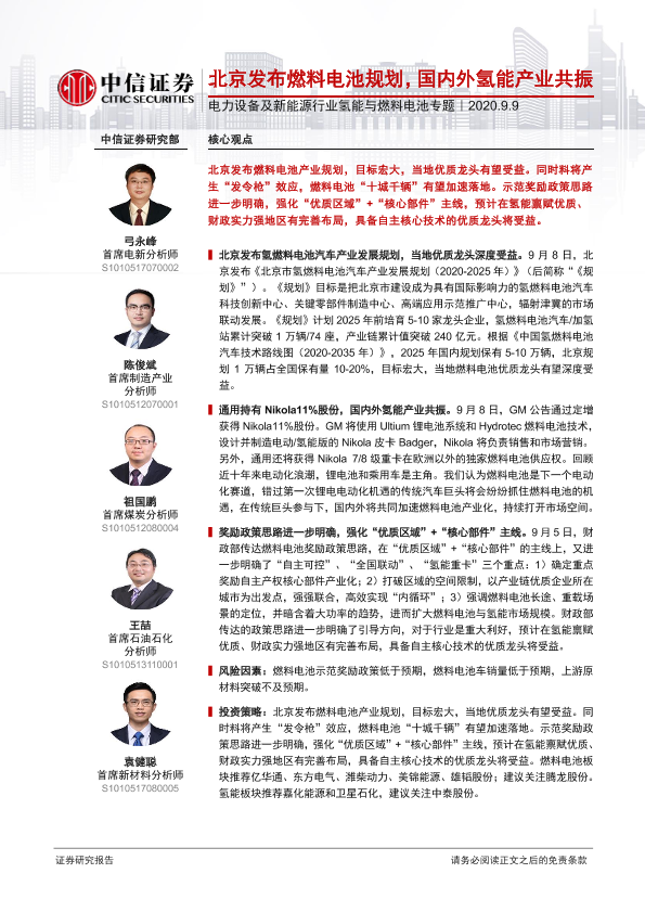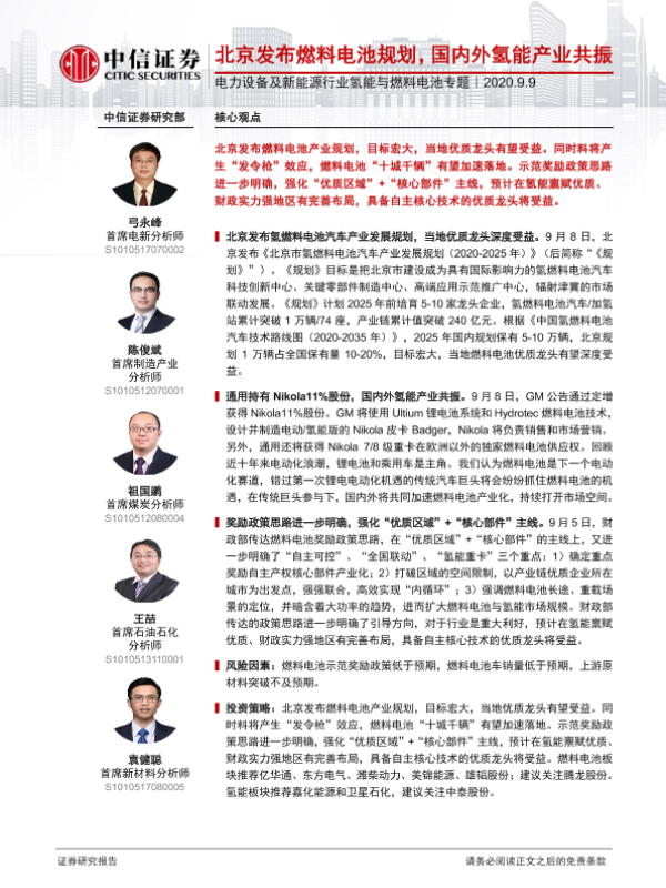 【中信证券】【20200909】电力设备及新能源行业氢能与燃料电池专题:北京发布燃料电池规划,国内外氢能产业共振-12页