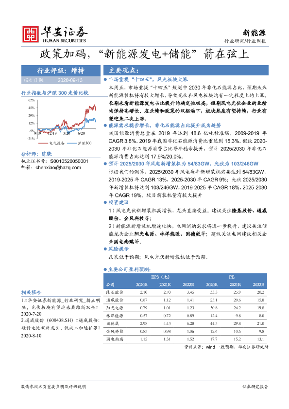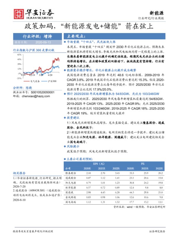 【华安证券】【20200913】20200913-华安证券-新能源行业周报:政策加码,“新能源发电+储能”箭在弦上-15页
