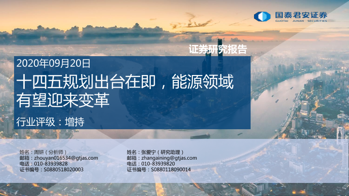 【国泰君安证券】【20200920】电气设备:十四五规划出台在即,能源领域有望迎来变革-19页