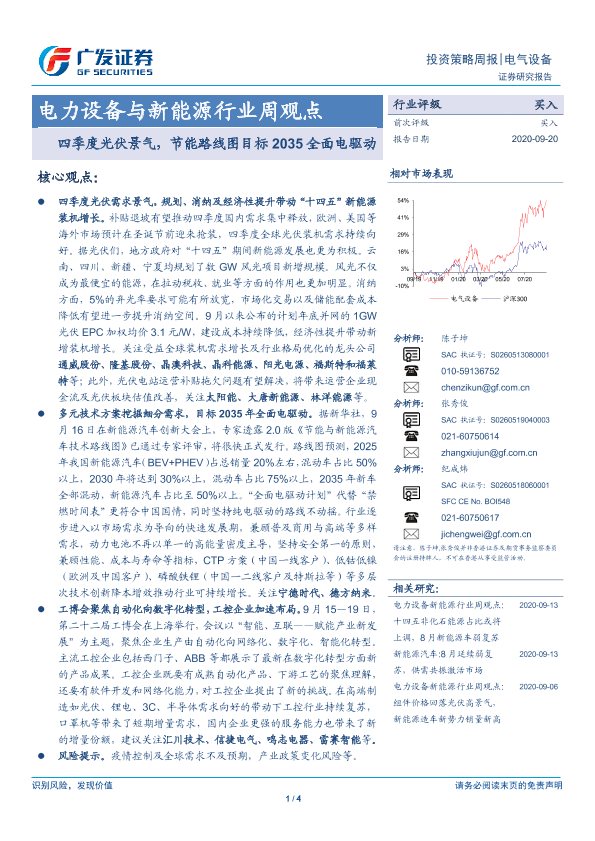 【广发证券】【20200920】电力设备与新能源行业周观点:四季度光伏景气,节能路线图目标2035全面电驱动-4页