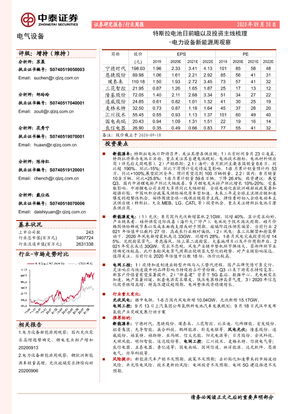 【中泰证券】【20200920】20200920-中泰证券-电力设备新能源周观察:特斯拉电池日前瞻以及投资主线梳理-23页