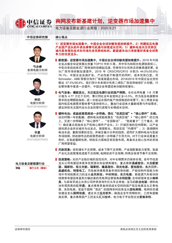 【中信证券】【20200921】电力设备及新能源行业周报:南网发布新基建计划,逆变器市场加速集中-13页