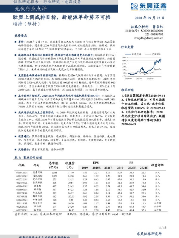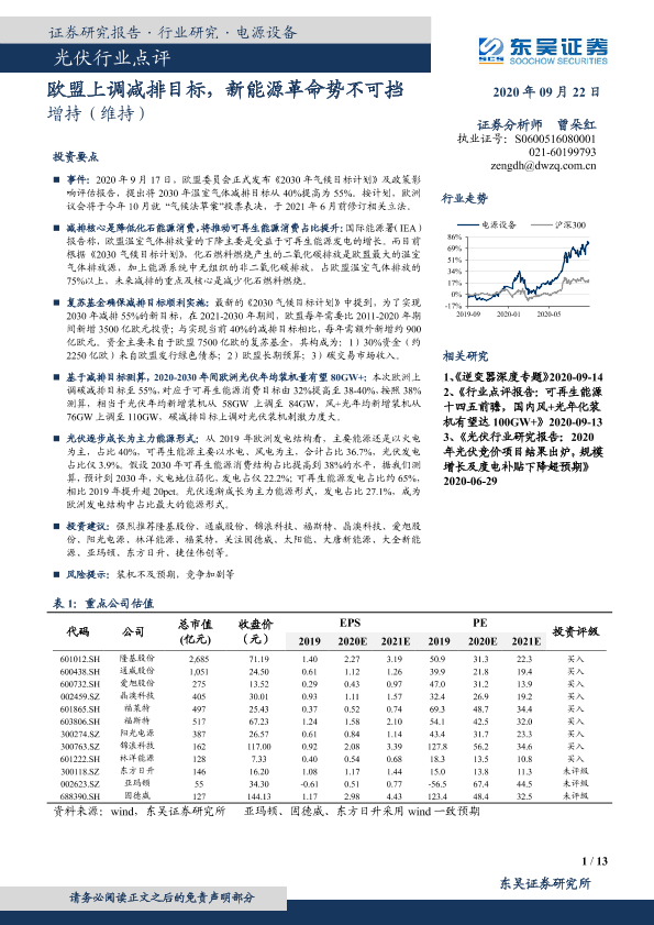 【东吴证券】【20200922】光伏行业点评:欧盟上调减排目标,新能源革命势不可挡-13页