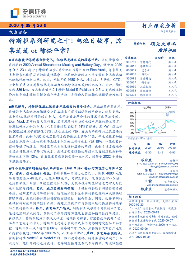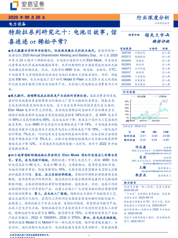 【安信证券】【20200926】特斯拉系列研究之十:电池日故事,惊喜连连or稀松平常?-24页